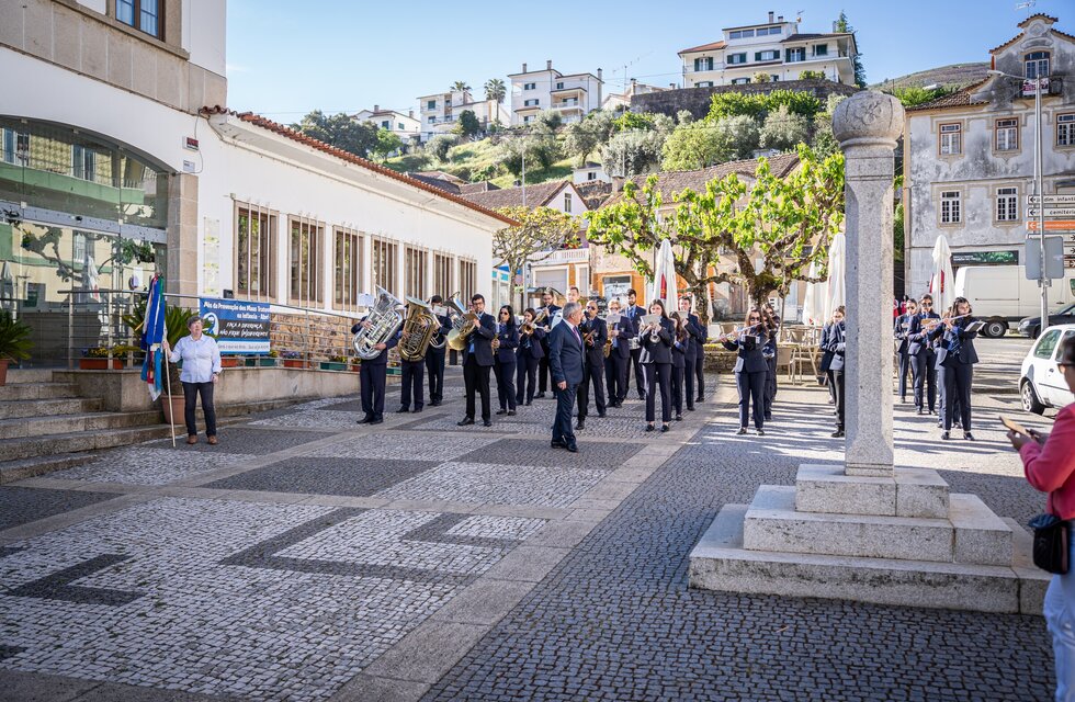 Ao hastear das bandeiras de Portugal e do Concelho com o acompanhamento do Grupo Musical Fraternidade Pampilhosense, seguiu-se a declamação de poemas de abril por Olímpia Lucas e Leonor Marques.