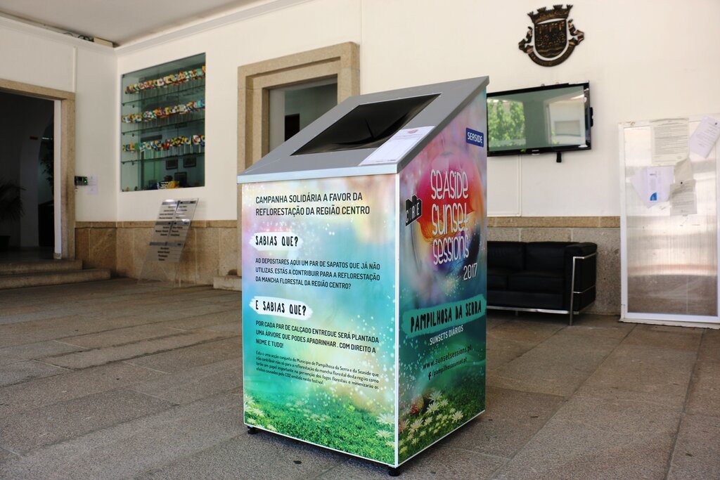 No átrio da Câmara Municipal de Pampilhosa da Serra, está um recipiente, devidamente identificado, onde poderá deixar um par de sapatos que eventualmente já não utilize. Por cada par de calçado entregue, será plantada uma árvore que poderá apadrinhar e que terá o seu nome. Para o efeito, basta que no ato da entrega preencha o curto formulário disponível junto ao recipiente. Simples, não é?