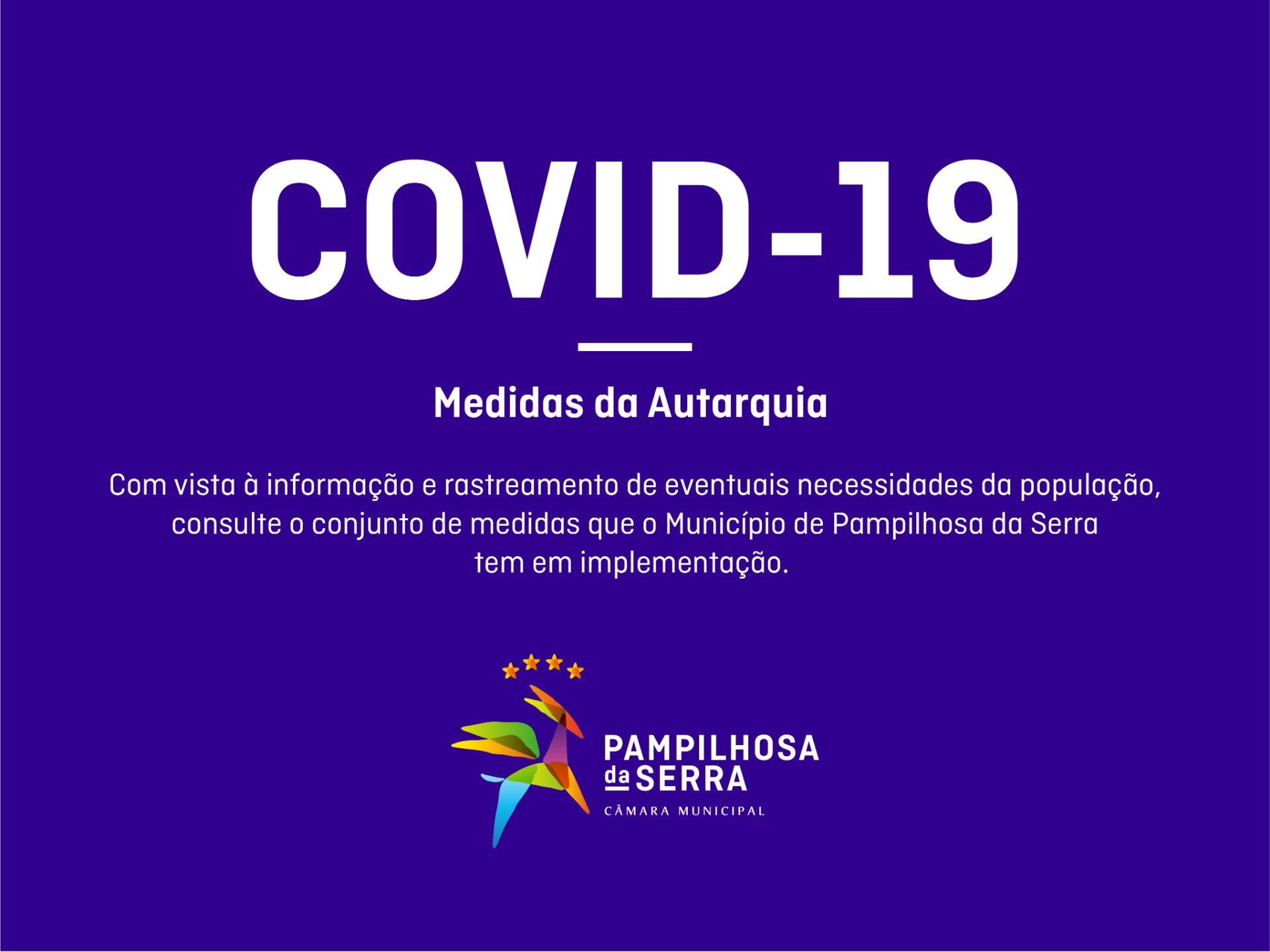 Com vista à informação e rastreamento de eventuais necessidades da população, o Município de Pampilhosa da Serra tem em implementação um conjunto de medidas de apoio, que pode consultar abaixo: