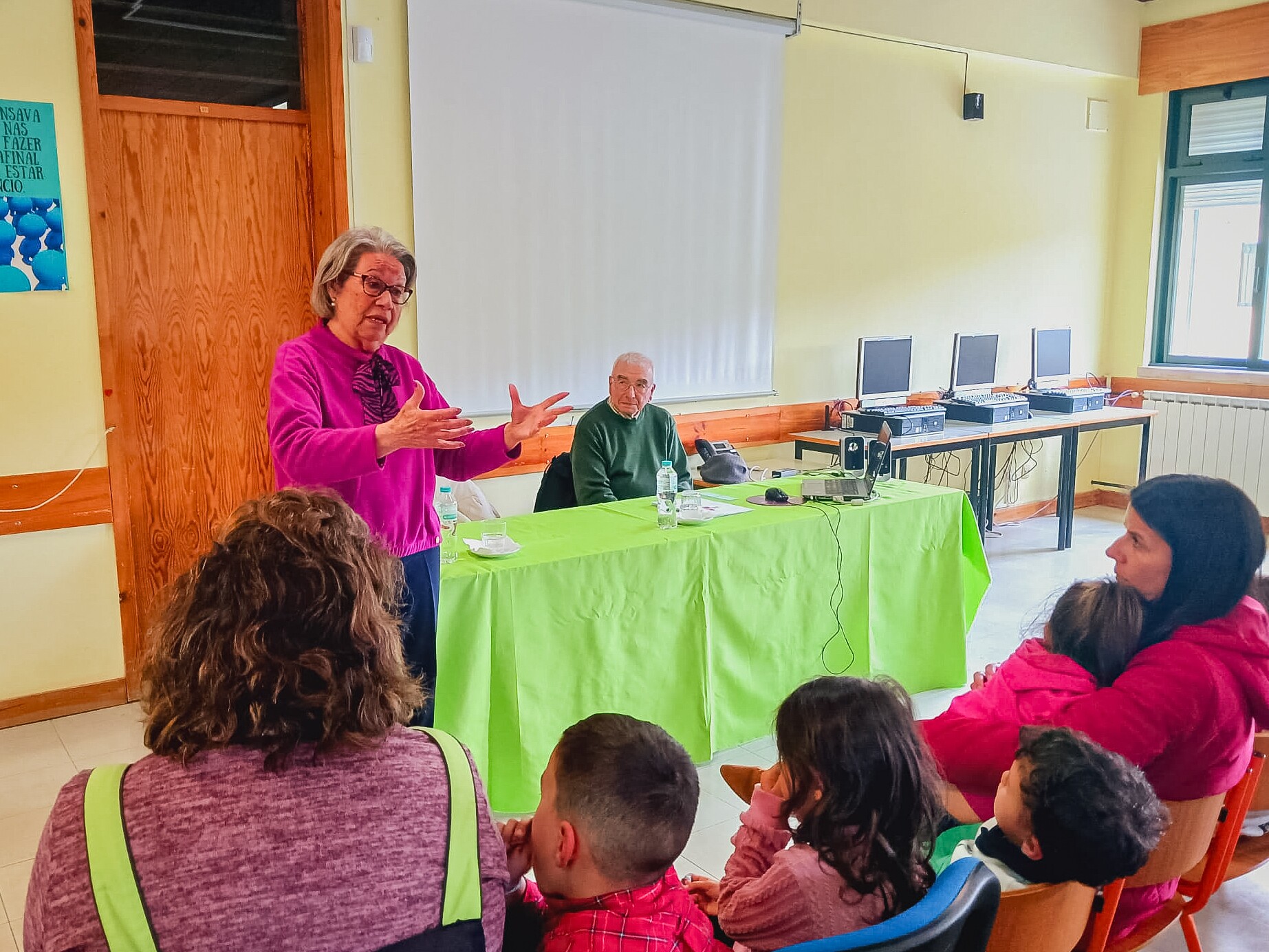 A iniciativa reuniu cerca de 80 crianças do pré-escolar e 1.º ciclo da Escola Sede e do Centro Educativo de Dornelas do Zêzere, que tiveram a oportunidade de partilhar momentos de diálogo e aprendizagem com os seniores pampilhosenses Fátima Caires e José Almeida.