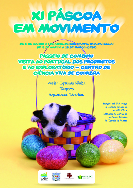 Encontra-se a decorrer desde 18 de março e até 1 de abril a XI edição do programa "Páscoa em Movimento", promovida pela Ludoteca "Pampilho" do Município de Pampilhosa da Serra, em parceria com a Associação de Solidariedade Social de Dornelas do Zêzere e ATL da Cáritas Diocesanas de Coimbra.
