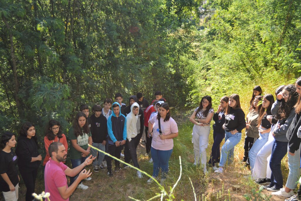 No período da manhã, 31 alunos do 8º e 9º ano realizaram uma caminhada nas margens do Rio Unhais, onde tiveram oportunidade de compreender a problemática relacionada com a expansão de plantas invasoras, aprendendo algumas técnicas de controlo de acácia-mimosa (Acacia dealbata). Os jovens identificaram ainda várias espécies de fauna e flora nativa de Pampilhos da Serra, e aprenderam a diferenciar vários tipos de líquenes (fungos) e a compreender a sua função enquanto bioindicadores da qualidade do ar.