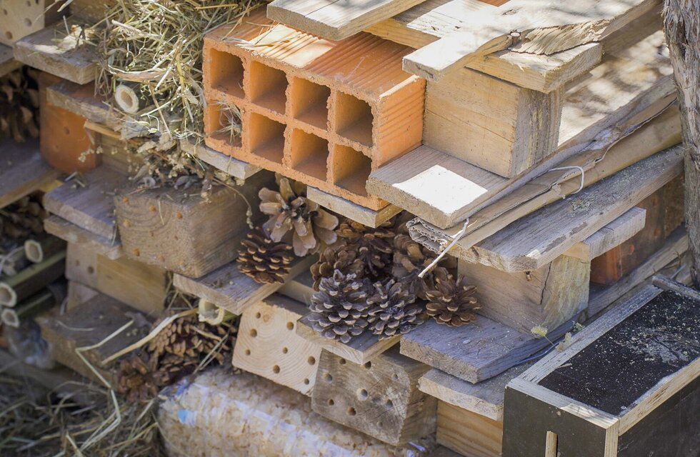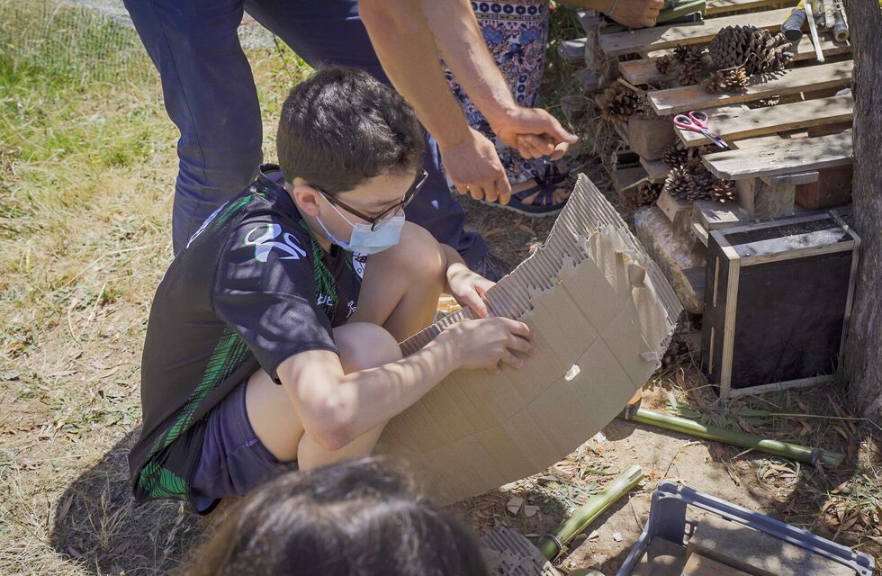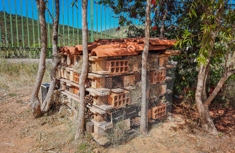 A instalação de hotéis de insetos pode contribuir para conservar a biodiversidade local e promover o aparecimento de insetos benéficos, transformando a escola num verdadeiro laboratório vivo, ao ar livre.