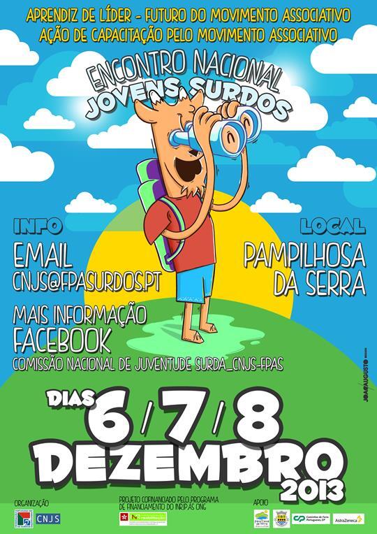 Nos próximos dias 6, 7 e 8 de dezembro, a Pampilhosa da Serra irá receber o Encontro Nacional de Jovens Surdos, no âmbito do Projeto "Aprendiz de Líder - Futuro do Movimento Associativo", uma organização da Federação Portuguesa das Associações de Surdos e da Comissão Nacional da Juventude Surda com o apoio do Município e da Junta de Freguesia de Pampilhosa da Serra.
