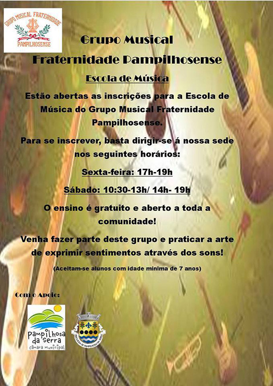 Encontram-se abertas as inscrições para a Escola de Música do Grupo Musical Fraternidade Pampilhosense.