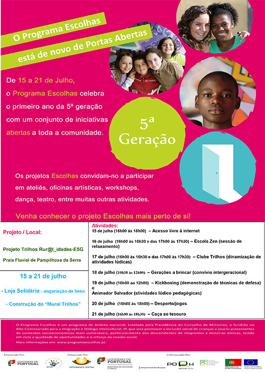 O Município de Pampilhosa da Serra promove, no âmbito do Projeto Trilhos Rur@l_idades-E5G, um conjunto de atividades inseridas no "Escolhas Portas Abertas", que decorrerá de 15 a 21 de julho de 2013.