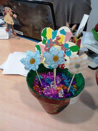 Esta iniciativa consistiu em que cada idoso, individualmente, decorasse um vaso com vário material, desde confetes, a pedrinhas de diversas cores sendo que depois pintaram-nos a seu gosto, dando asas à sua imaginação.