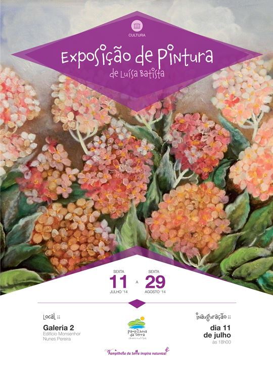 No próximo dia 11 de julho (sexta-feira), pelas 18h00, vai a inaugurar a Exposição de Pintura da autoria de Luísa Filipe Batista.