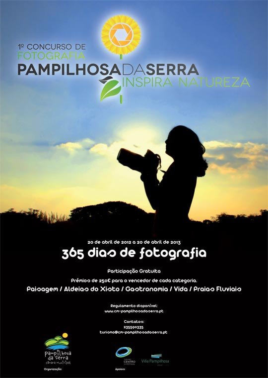 Assim, e em parceria com o Turismo Centro de Portugal e o Villa Pampilhosa Hotel, vai realizar-se o I Concurso de Fotografia, entre 20 de abril de 2012 e 20 de abril de 2013.