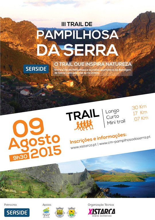 Com organização técnica da XISTARCA, patrocínio da SEASIDE e apoios do Município de Pampilhosa da Serra e das Juntas de Freguesia do Cabril e da Pampilhosa da Serra, vai realizar-se no dia 9 de agosto, pelas 9:30 horas, o III Trail de Pampilhosa da Serra- Seaside.