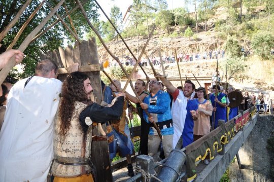 Seguiu-se a contenda propriamente dita, na Ponte que deu nome a esta narrativa, onde, num cenário épico se recriou a luta entre estes dois povos pela posse deste território. Sob comando do alcaide e do tenente alcaide, contracenados pelo senhor Presidente da Câmara, José Brito e pelo senhor Vice-Presidente, Jorge Custódio, o povo Pampilhosense saiu vitorioso mantendo assim a sua soberania, reconhecida pela carta de privilégios concedida pelo rei D. João I, em 1385.