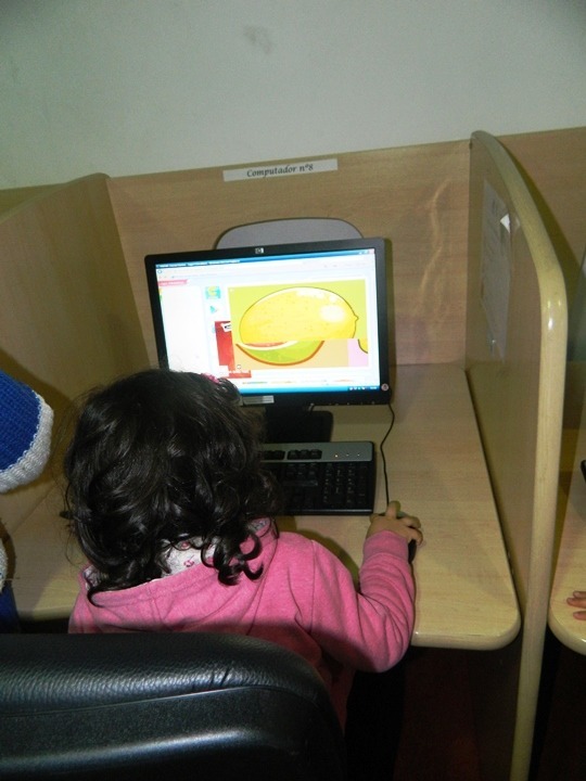 Esta atividade consistiu na dinamização de alguns jogos didáticos online, devidamente adaptadas à faixa etária e de forma a permitir a exploração de alguns conteúdos, entre os quais: a identificação das cores, já sei contar, encaixar formas geométricas e completar as frutas.