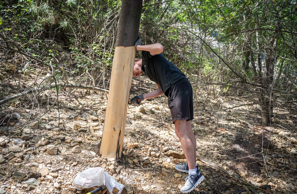 O objetivo desta iniciativa foi o descasque de mimosas (Acacia dealbata). João Freitas, biólogo e técnico da MONTIS, afirma que "existem dois grandes núcleos de Acacia dealbata nas margens da albufeira de Santa Luzia que precisam de ser controlados", contribuindo significativamente para a "degradação da vegetação nativa e a empobrecimento do solo".