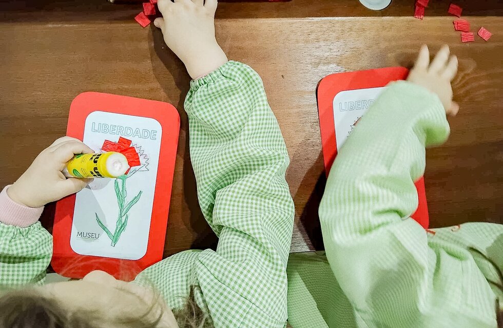 Seguiu-se um momento de conversa e partilha, onde cada criança pôde dizer o que sentiu e o que pensa sobre o tema. Posteriormente, colocaram mãos à obra: cada criança foi convidada a elaborar um cravo - símbolo maior da Revolução.