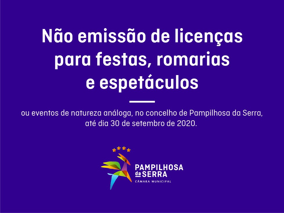 Tendo em consideração os mais recentes desenvolvimentos relativos ao surto epidemiológico provocado pela Covid-19 a nível nacional, as normas e orientações das Autoridades de Saúde e que a realização a realização de festas, romarias e eventos de natureza análoga constituem graves riscos para a propagação da pandemia, a Câmara Municipal, até ao dia 30 de setembro, não emitirá quaisquer licenças necessárias à realização deste tipo de eventos no concelho.