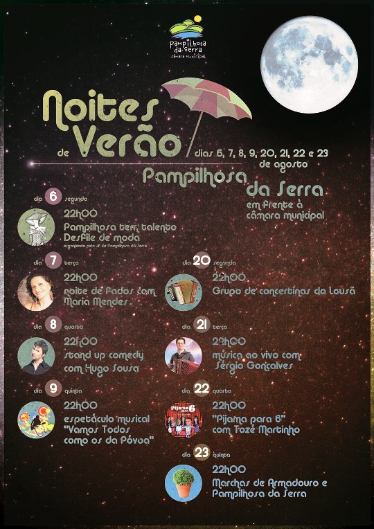O Município de Pampilhosa da Serra vai, uma vez mais realizar as Noites de Verão, sendo que este ano decorrerão de 6 a 9 e de 20 a 23 de agosto.
