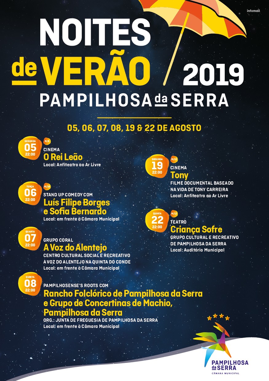 As “Noites de Verão” estão de volta à Vila de Pampilhosa da Serra. De 5 a 8 de agosto e nos dias 19 e 22 do mesmo mês, o Município de Pampilhosa da Serra, promove a 9ª edição deste conjunto de espetáculos.