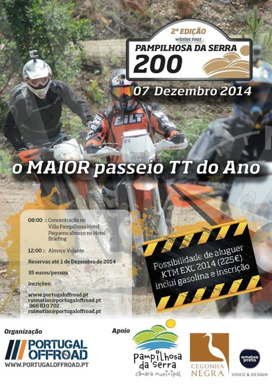 No próximo dia 7 de dezembro realiza-se a 2º Edição Winter Tour Pampilhosa da Serra 200, um evento promovido pelo Portugal Offroad com o apoio do Município de Pampilhosa da Serra.