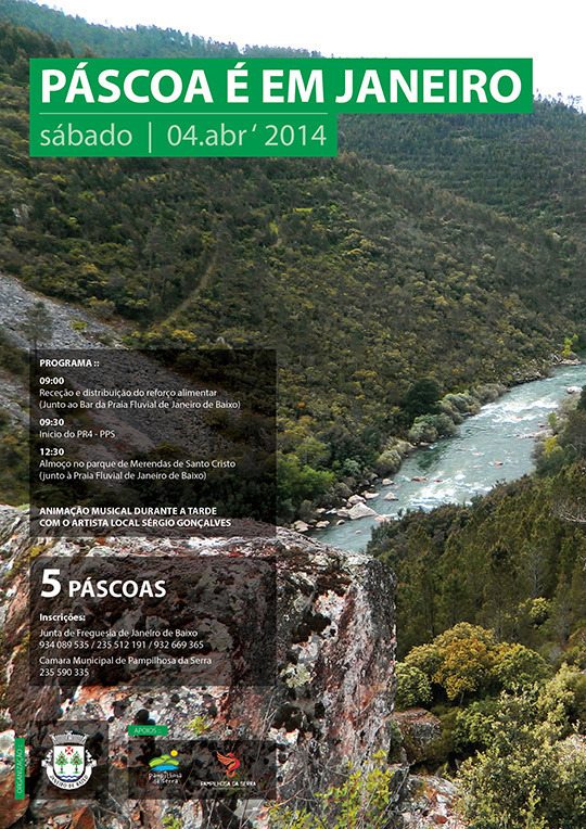 A Junta de Freguesia de Janeiro de Baixo, em parceria com a Câmara Municipal e os Bombeiros Voluntários de Pampilhosa da Serra, vão promover no próximo dia 4 de abril a 5º edição da atividade" A Páscoa é em Janeiro"
