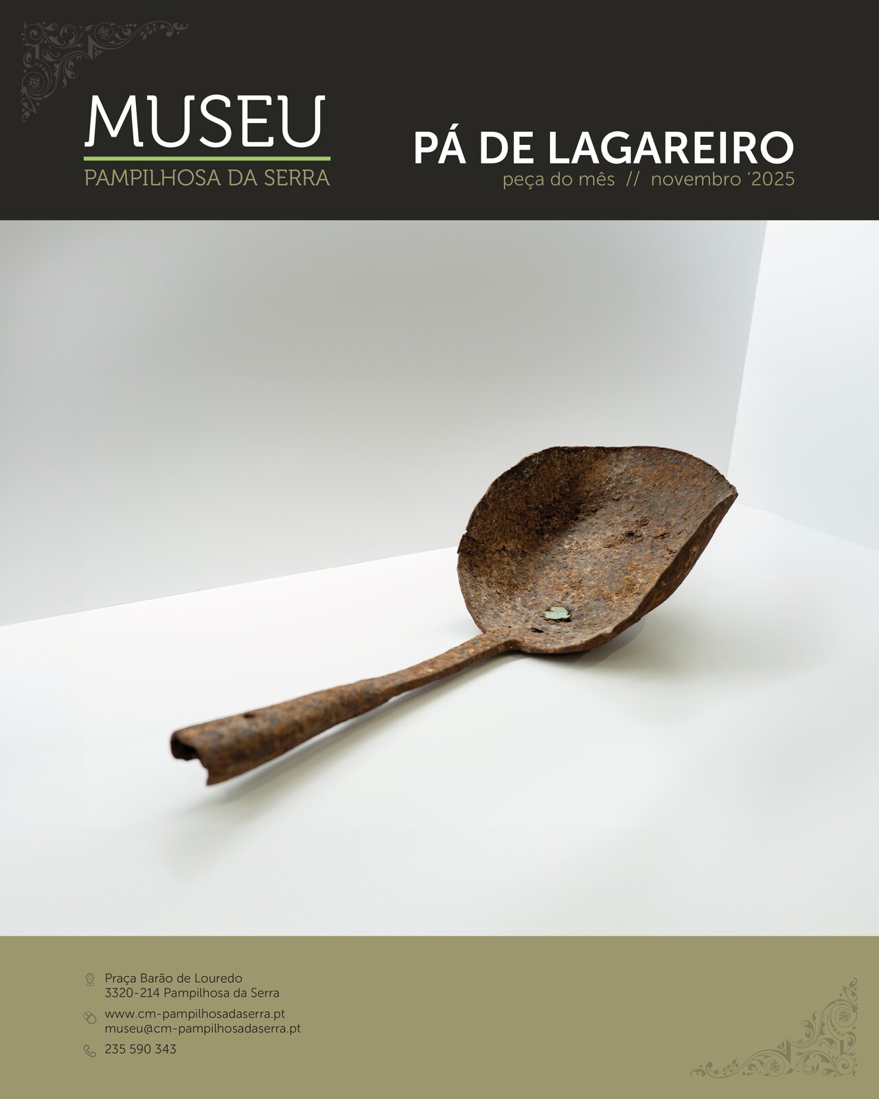O Museu Municipal destaca como peça do mês de novembro, a Pá de Lagareiro. Trata-se de um instrumento em ferro, originalmente provido com cabo de madeira, utilizado nos lagares tradicionais durante o processo artesanal de produção do azeite.