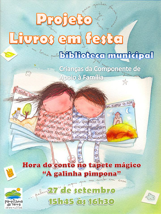 Estas atividades realizam-se às quintas-feiras, no horário das 15h45 às 16h30, na sala de leitura da Biblioteca Municipal. Assim, no dia 27 de setembro será dinamizada a Hora do conto no tapete mágico " A Galinha Pimpona", no âmbito da comemoração do Dia Mundial do Animal (4 de outubro).