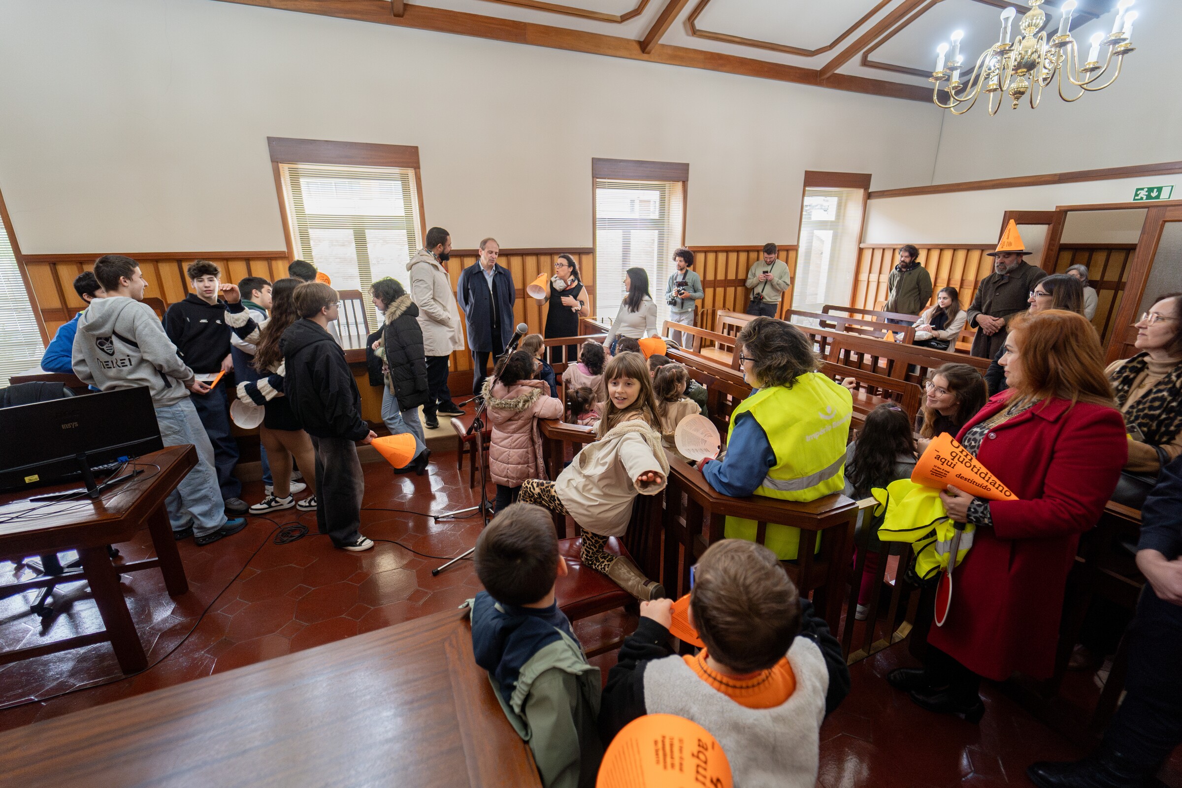 O momento de abertura da exposição, que pode ser visitada gratuitamente até ao dia 9 de maio (de segunda a sexta, das 9h00 às 16h00), contou igualmente com a energia das crianças do pré-escolar da Escola Sede de Pampilhosa da Serra, com as quais o projeto, através de residências artísticas, vai “trabalhar a descentralização do lugar educativo, trazendo a escola para os equipamentos da justiça”, explicou Filipa Morgado.