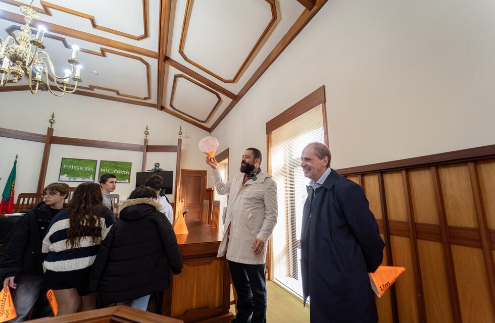 O Presidente da Câmara Municipal, Jorge Custódio, esteve presente na inauguração e acompanhou a visita às quatros obras do acervo do CAPC que integram a exposição, e que visam despertar a memória coletiva, assim como desafiar a linguagem jurídica e simbólica que reconhecemos como marca dos espaços de justiça.
