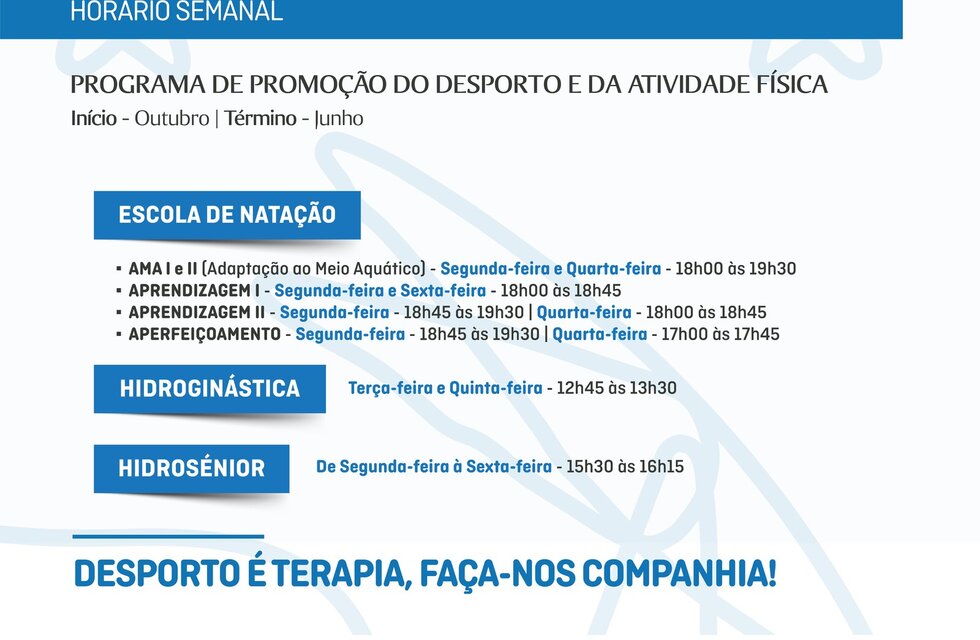 Consulte a imagem e descubra os horários das atividades aquáticas – há opções para todas as idades e níveis de preparação!