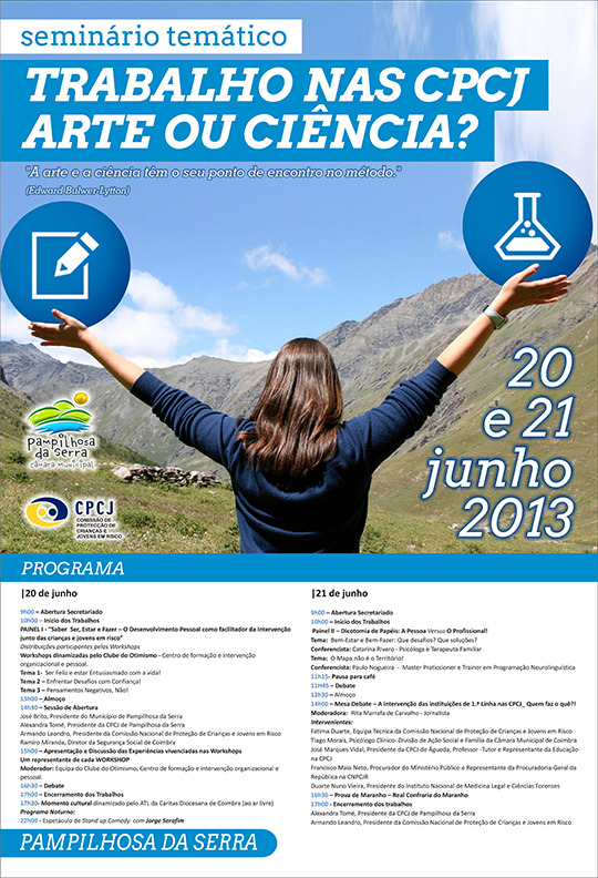 O Município de Pampilhosa da Serra e a Comissão de Proteção de Crianças e Jovens em Risco de Pampilhosa da Serra vão realizar, nos próximos dias 20 e 21 de junho, um Seminário Temático, subordinado ao tema "Trabalho nas CPCJ, Arte ou Ciência?".