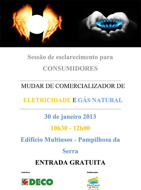 Vai realizar-se no próximo dia 30 de janeiro de 2013, entre as 10h30 e 12h00, uma sessão de esclarecimento para consumidores, tendo como tema "Mudar de Comercializador de Eletricidade e Gás Natural".
