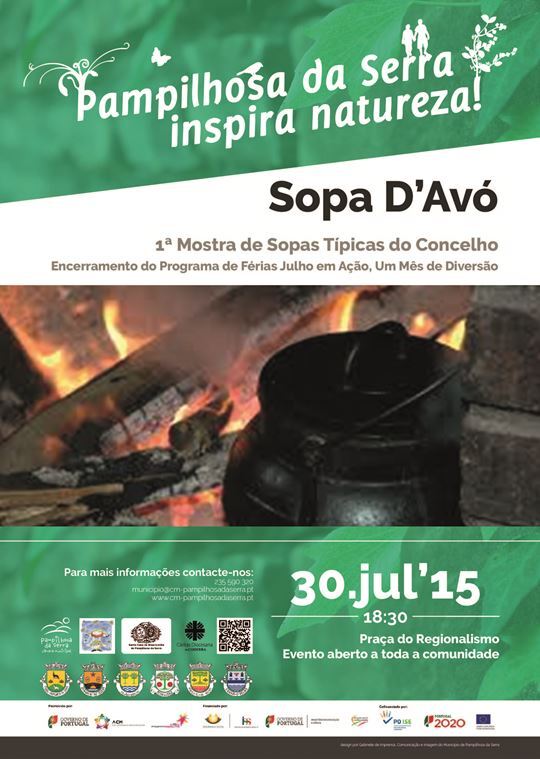 O Município de Pampilhosa da Serra, com a participação das Junta de Freguesia do Cabril, Fajão/Vidual, Dornelas do Zêzere, Pessegueiro, Portela do Fojo/Machio, Unhais o Velho e a Santa Casa da Misericórdia de Pampilhosa da Serra irão promover no próximo dia 30 de julho de 2015, pelas 18h30, na Praça do Regionalismo, uma mostra de sopas típicas, com o objetivo de promover a riqueza gastronómica do concelho.