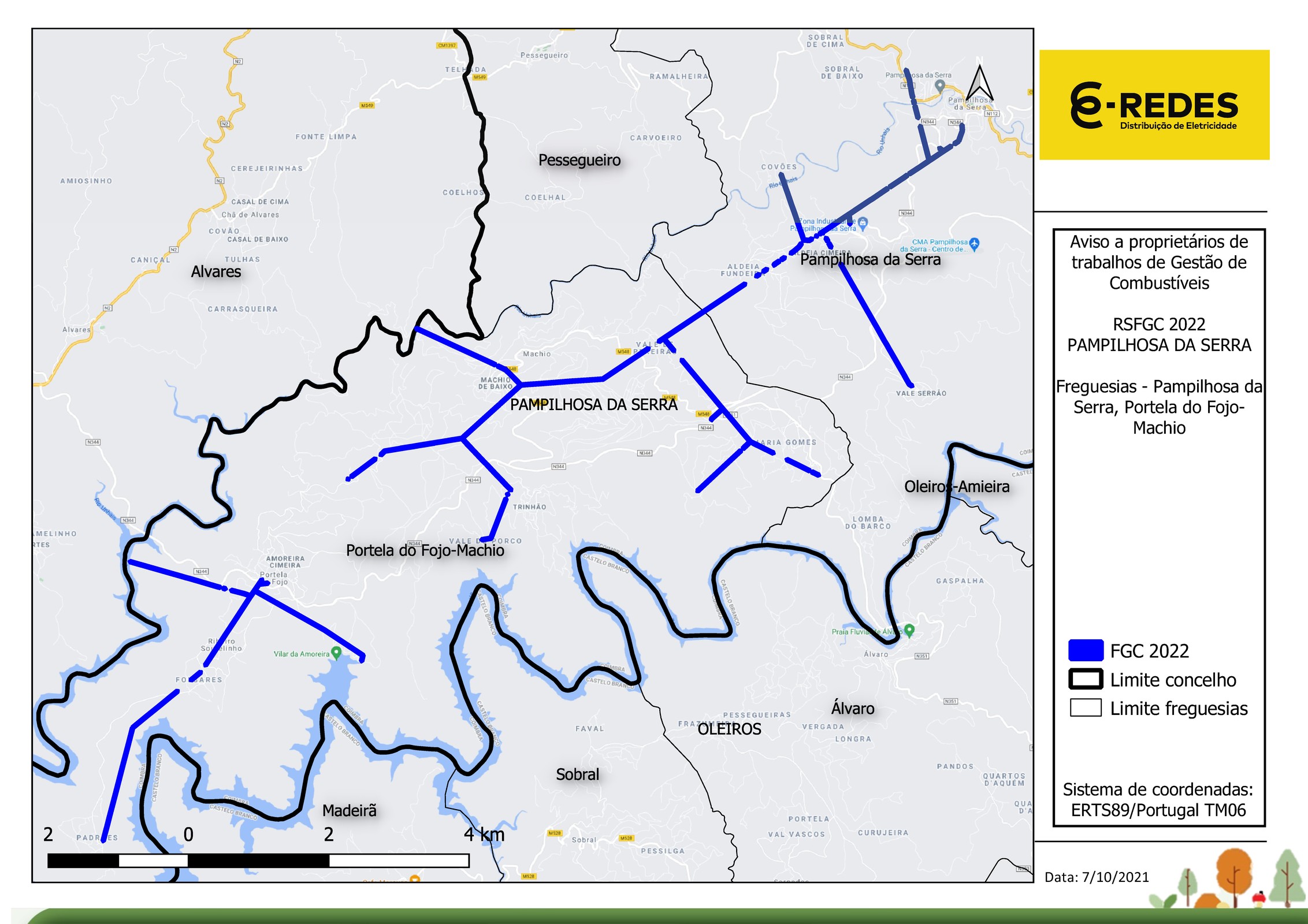 Em cumprimento do disposto no Decreto-Lei n.º 124/2006, de 28 de Junho, na sua atual redação, que estabelece as medidas e ações a desenvolver no âmbito do Sistema Nacional de Defesa da Floresta contra Incêndios, e do Plano Municipal de Defesa da Floresta Contra Incêndios – PMDFCI – do Concelho, vimos informar que a E-REDES - Distribuição de Eletricidade, S.A. vai promover as ações de gestão do combustível nas faixas das linhas de Alta e Média Tensão abrangidas pela mencionada proposta de PMDFCI e que integram a Rede Secundária de Faixas de Gestão de Combustível, para o ano de 2022.