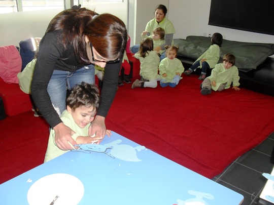 No final da história as crianças, fizeram uma atividade de expressão plástica, que consistiu em deixar a sua "impressão digital" na gotinha de água.