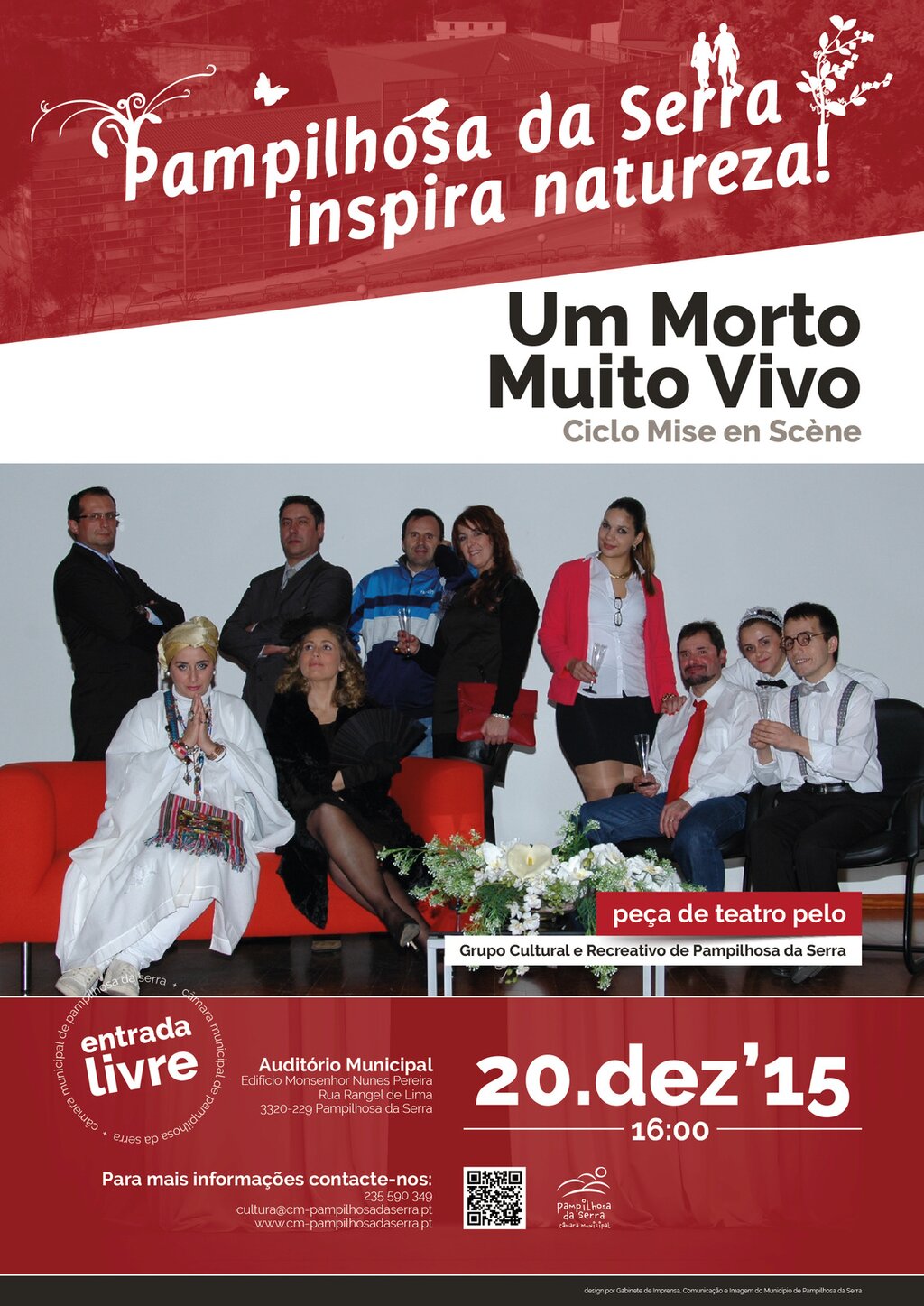 No próximo dia 20 de dezembro, pelas 16h00, o Auditório Municipal Monsenhor Nunes Pereira recebe a comédia "Um Morto Muito Vivo", uma produção do Grupo Cultural e Recreativo de Pampilhosa da Serra.