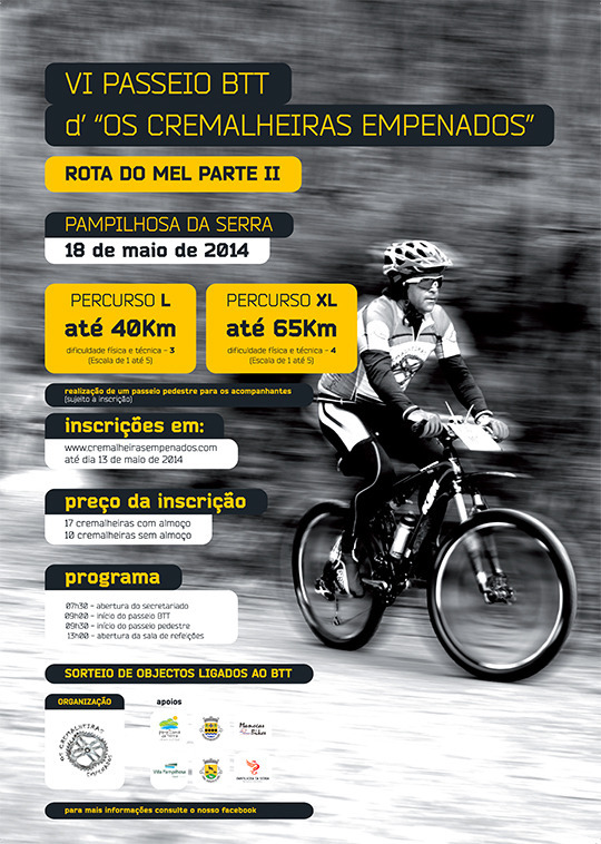 Vai realizar-se no próximo dia 18 de maio o VI passeio BTT -Rota do Mel (Parte II), uma organização d` Os Cremalheiras Empenados" com o apoio do Município de Pampilhosa da Serra.