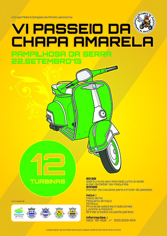 Vai realizar-se no próximo dia 22 de setembro o VI Passeio da Chapa Amarela. À semelhança dos anos anteriores o percurso do passeio terá como itinerário várias povoações do concelho de Pampilhosa da Serra, utilizando sempre estrada asfaltada, onde os participantes serão guiados pelos lugares mais emblemáticos e proporcionando a todos os aficionados das duas rodas de chapa amarela um encontro com a natureza.