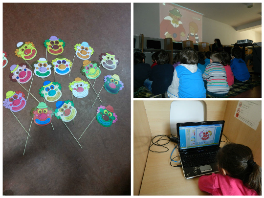 Partindo da exploração de recursos lúdicos na Internet, os pequenos foliões assistiram ao filme "Teo - O Carnaval" e coloriram entusiasticamente as suas máscaras carnavalescas.